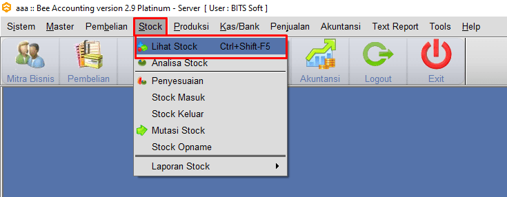 Ke menu [Stock] > [Lihat Stock]