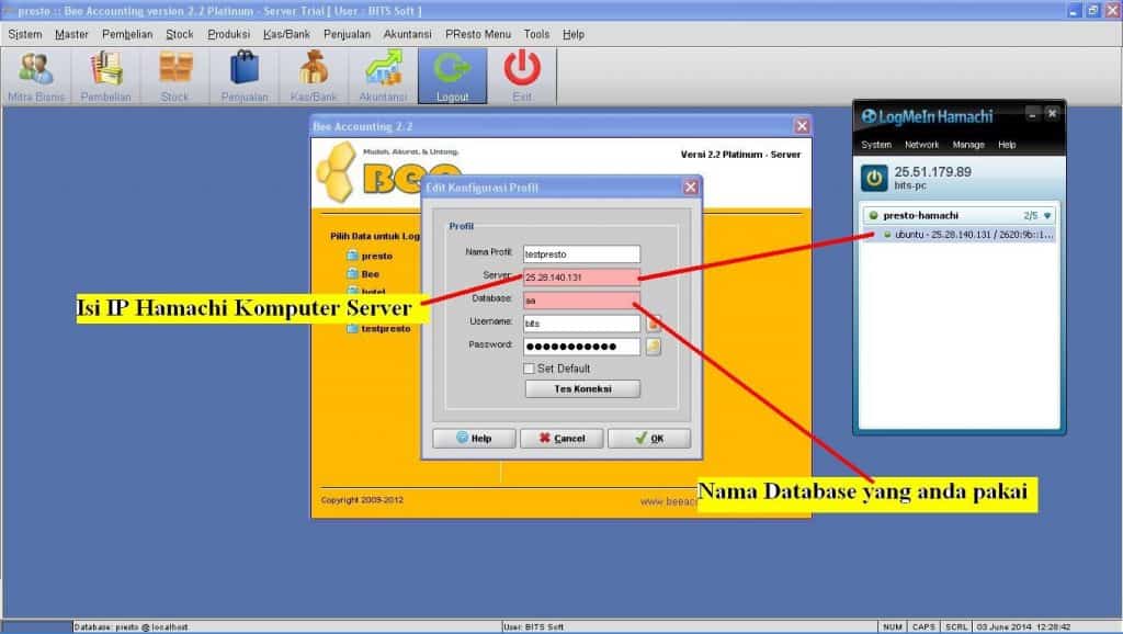Setting pada konfigurasi database program BeeAccounting anda
