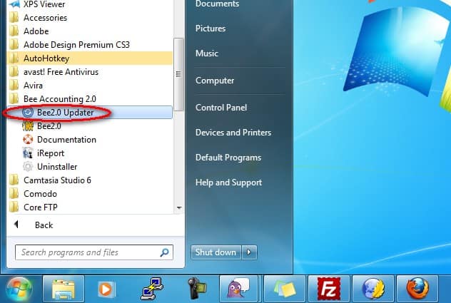 1.  Program updater bisa diakses melalui menu Start>> All Progam>> Bee Accounting>> Bee2.0 Updater