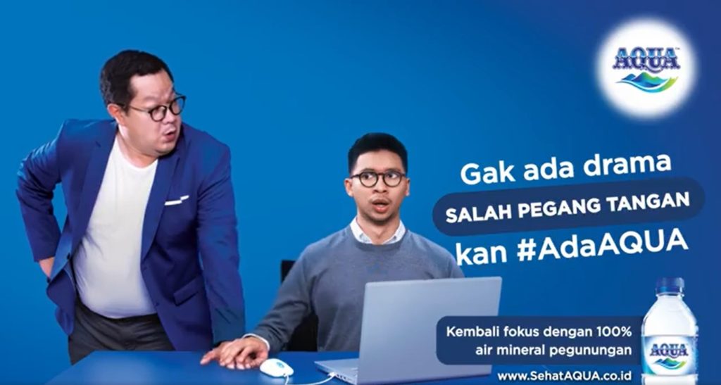 Berikutnya brand AQUA dengan campaignnya #AdaAQUA, kampanye ini menggunakan pendekatan yang mengingatkan konsumen untuk selalu menyediakan air notabenenya AQUA di berbagai situasi, baik di rumah, kantor, maupun saat beraktivitas di luar.