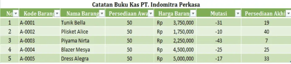 Contoh Pembukuan Inventaris Online Shop Sederhana (Credit: bee.id)
