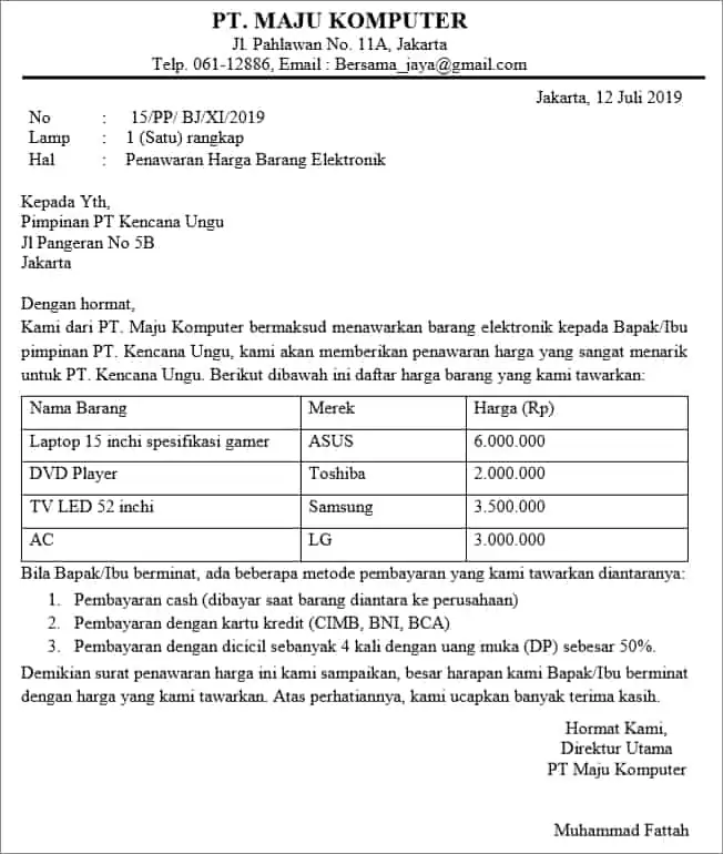 Berikut ini beberapa contoh surat penawaran yang bisa Anda perhatikan.