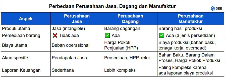 Perbedaan Perusahaan Jasa, Dagang dan Manufaktur (Credit: bee.id)