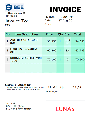 Pilih desain invoice cantik & professional yang siap cetak untuk bisnis anda