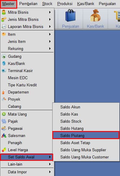 1. Masuk ke menu [Master] > [Set Saldo Awal] > [Saldo Awal Piutang]