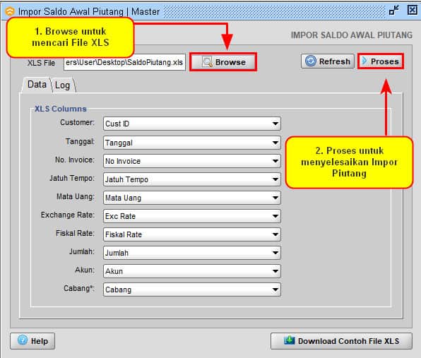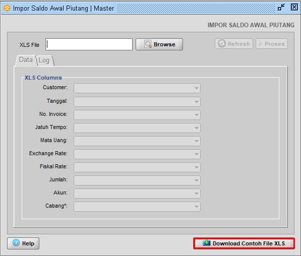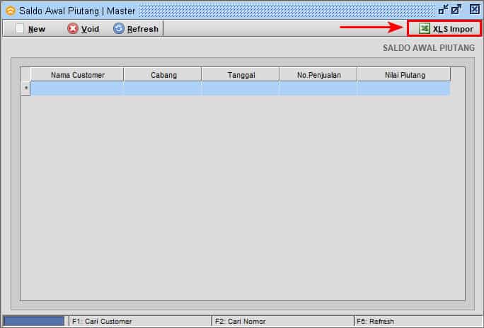Gambar 2. Menu XLS Impor Saldo Awal Piutang