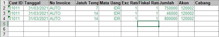 4. Isi Data Piutang sesuai Format XLS BeeAccounting