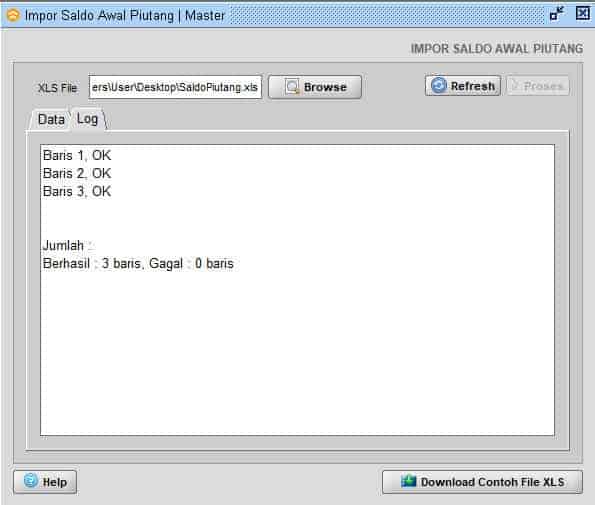 Gambar 5. Browse dan Proses Impor Saldo Awal Piutang