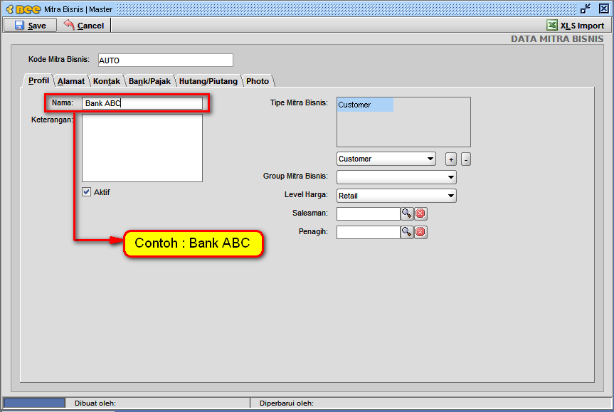 - Cukup pada kolom |Nama| disikan nama "Bank" yang bersangkutan