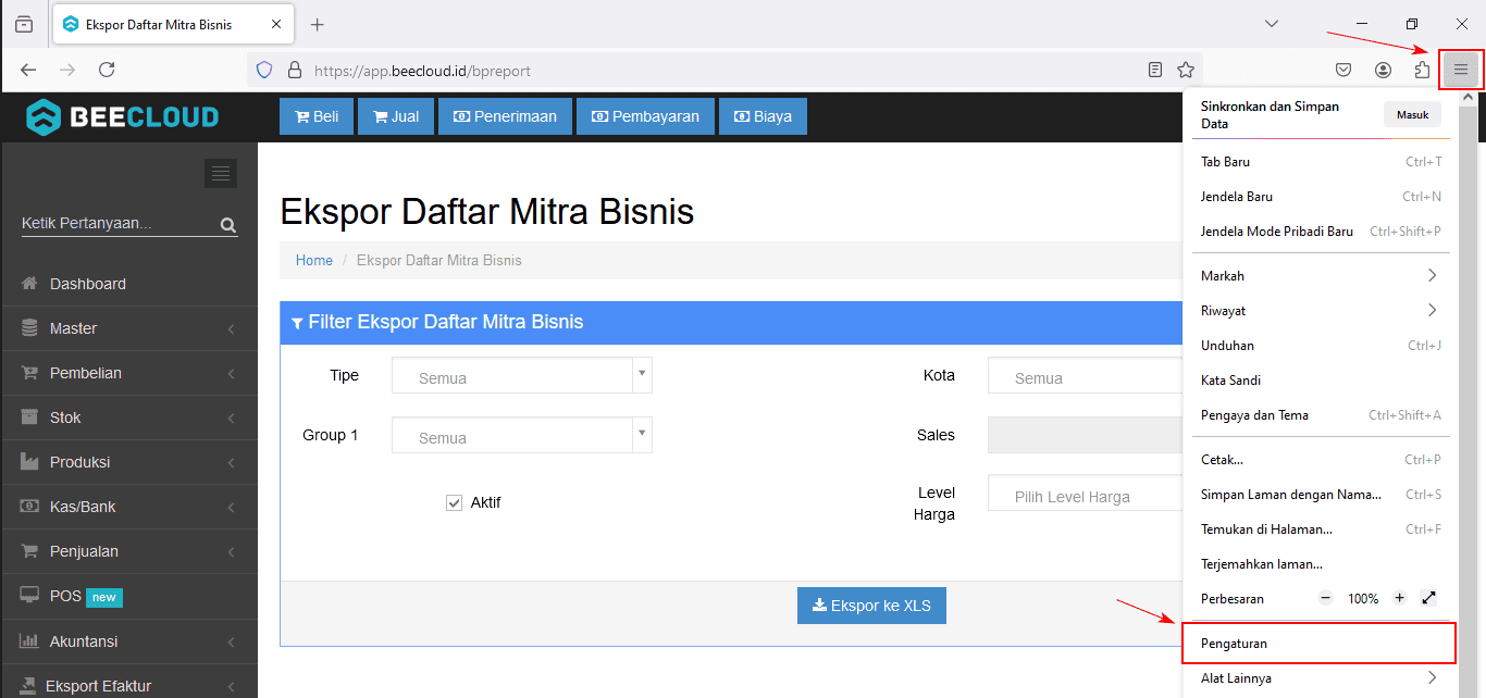 Kemudian lakukan reload/refresh halaman beecloud kembali dan lakukan ekspor ke excel.