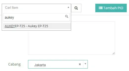 Namun, ketika cabang diganti ke Jakarta, maka item Aukey EP-T25 bisa diinput.