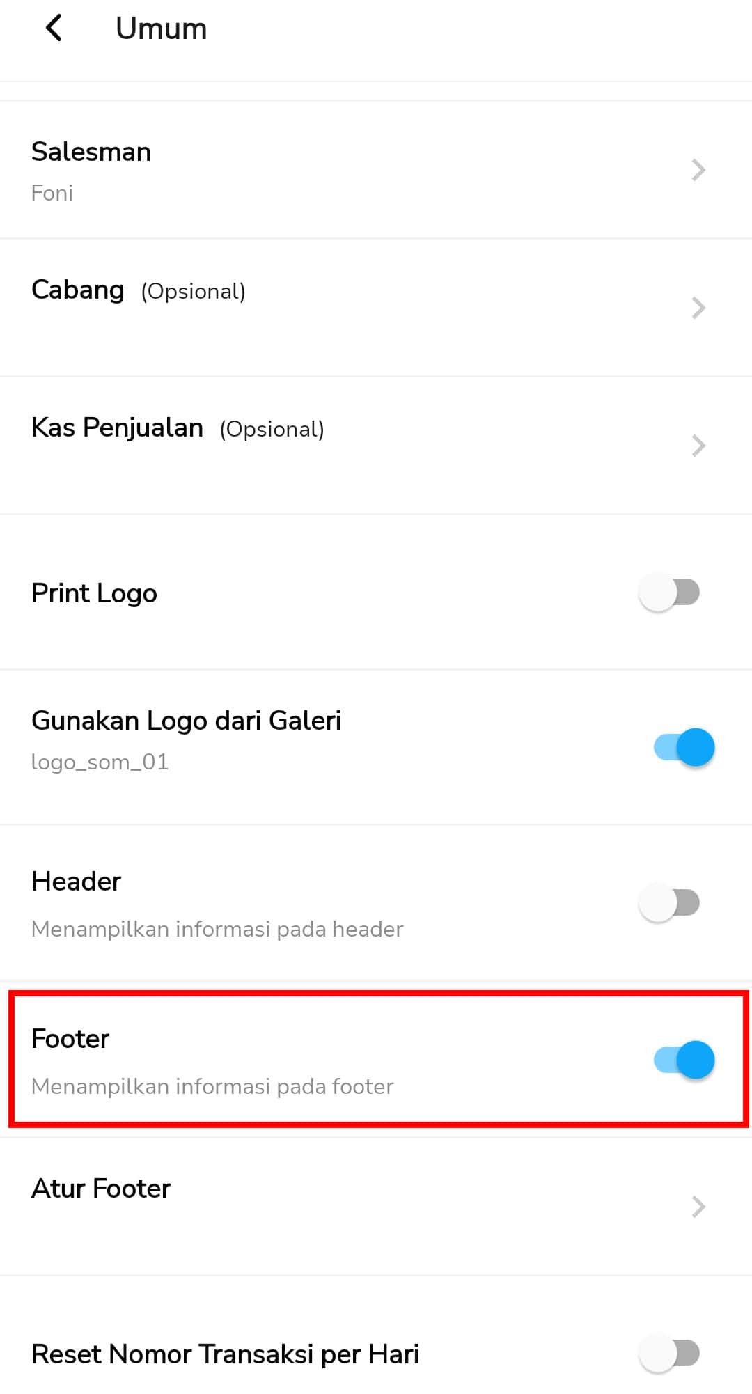 Pada panduan ini akan dijelaskan cara setting Footer pada nota aplikasi Beecloud Sales Order Mobile (SOM), Footer berfungsi untuk menyajikan informasi kontak perusahaan, memberikan keterangan tambahan seperti syarat dan ketentuan ataupun keterangan lainnya.