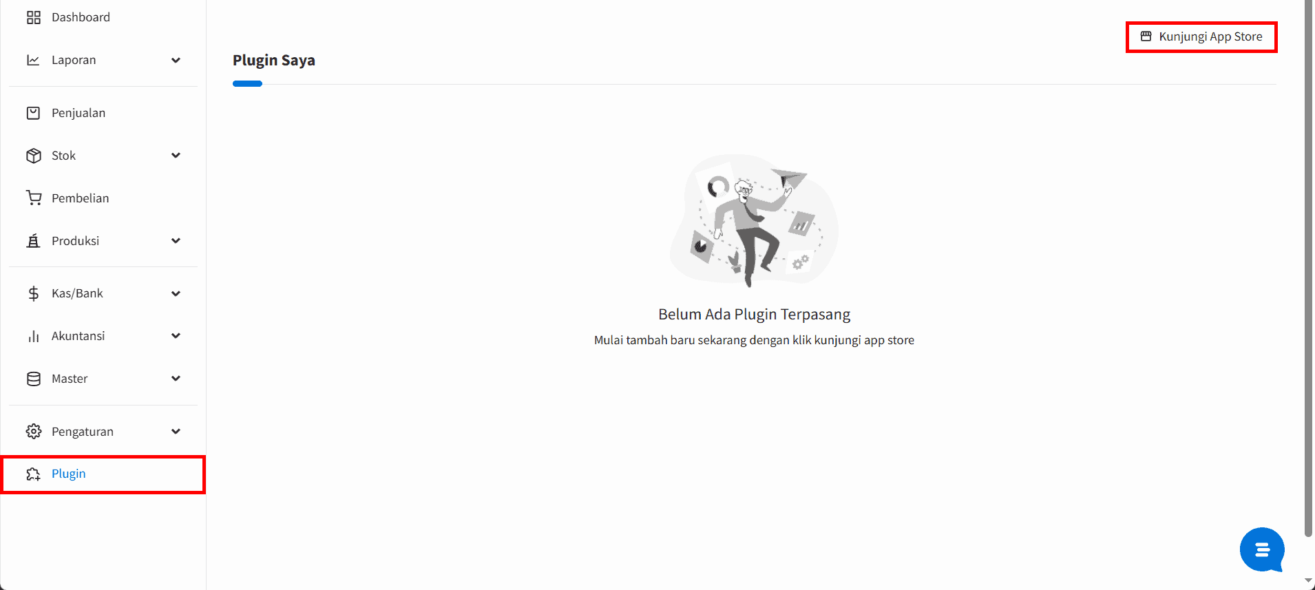 1. Masuk pada menu |Plugin|, lalu klik |Kunjungi App Store| untuk mencari plugin atau aplikasi yang dibutuhkan