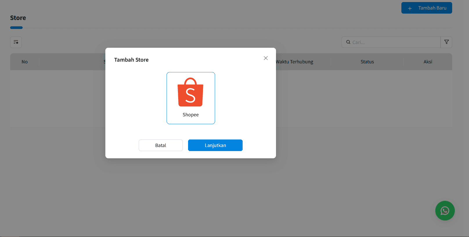 3. Pilih [Tambah Baru] | Pilih E-Commerce yang akan Anda hubungkan