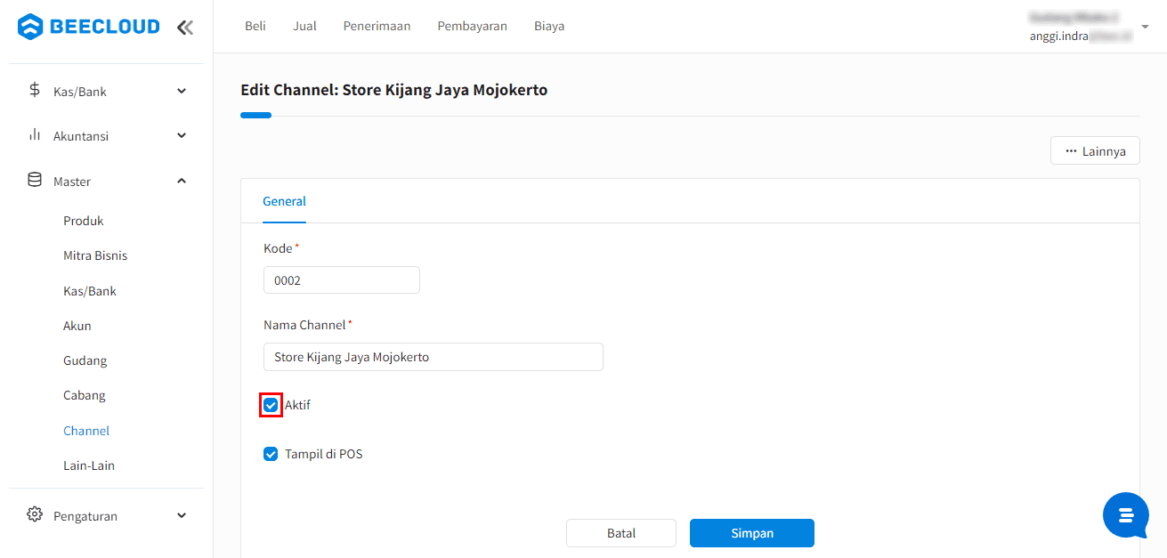 Berikut ini langkah-langkah cara menonaktifkan master channel Beecloud 3.0 :