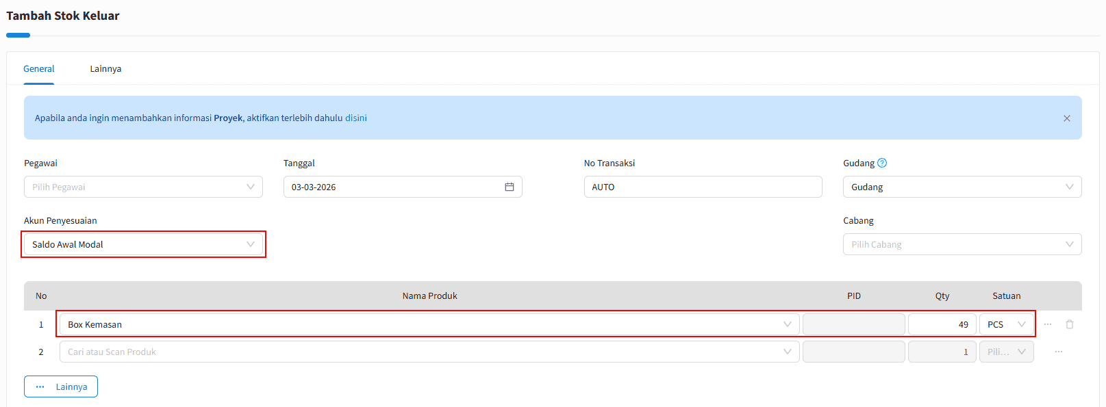 Jika anda sebelumnya telah membuat master produk dan sudah ada pencatatan stoknya, namun setelah dicek kembali ternyata pada master produk tersebut ada kesalahan seperti salah pilih tipe produk, salah setting pengarahan akun, dan sebagainya anda bisa membuat master produk baru dengan setting yang sesuai. Namun pastinya hal tersebut akan menjadikan anda mempunyai 1 double master produk dengan nama yang sama. Agar tidak terjadi double master produk anda bisa nonaktifkan salah satu master produk yang salah, dan untuk stok yang sudah masuk anda bisa pindahkan juga menjadi stok dari master produk yang baru.