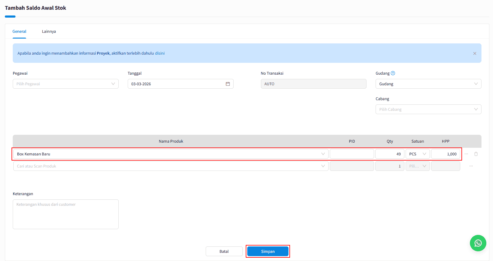 Gambar 4. Stok Master Produk Baru.