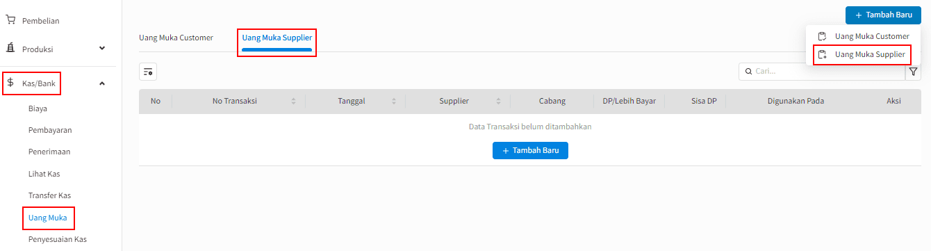 Pada panduan kali ini akan menjelaskan tentang bagaimana cara input Uang Muka Supplier Beecloud 3.0. Misalkan Anda memberi Deposit/Uang Muka kepada Supplier untuk digunakan pada pembelian Anda selanjutnya, atau dengan kata lain anda memberikan uang terlebih dahulu kepada supplier tapi belanjanya nanti.