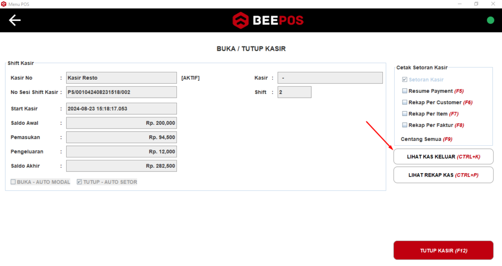 1. Pastikan sebelum cek kas keluar POS Kasir sedang aktif