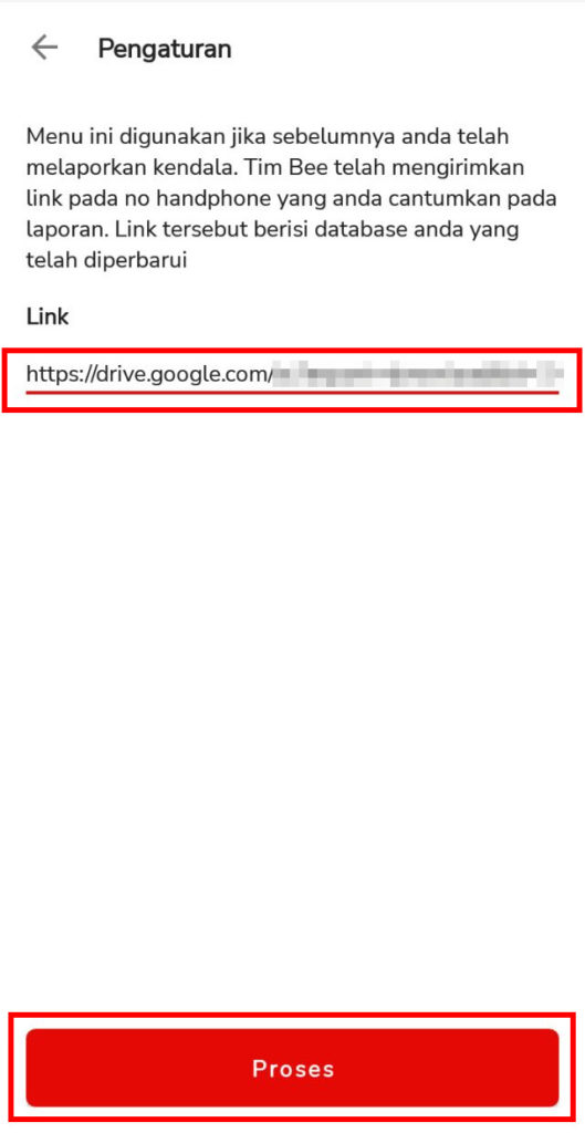 5. Kemudian Bisa dicopy dan pastekan link google drive yang sudah dikirimkan ke nomor handphone pada saat isi lapor kendala pada kolom Link tersebut, kemudian bisa dilakukan Klik |Proses|