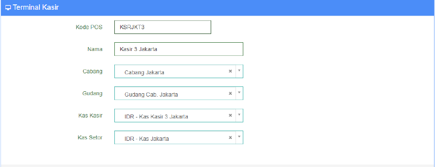 - Kode POS : Kode kasir (Contoh: KSRJKT3)