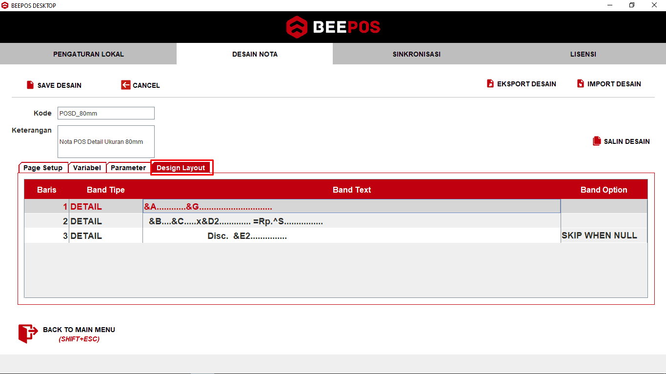 Catatan : Sebelum melakukan edit desain nota pada Beepos Desktop. Disarankan untuk lakukan export desain nota terlebih dahulu. Supaya Anda memiliki backup desain nota default sebelum diedit. Silahkan baca panduan berikut ini.