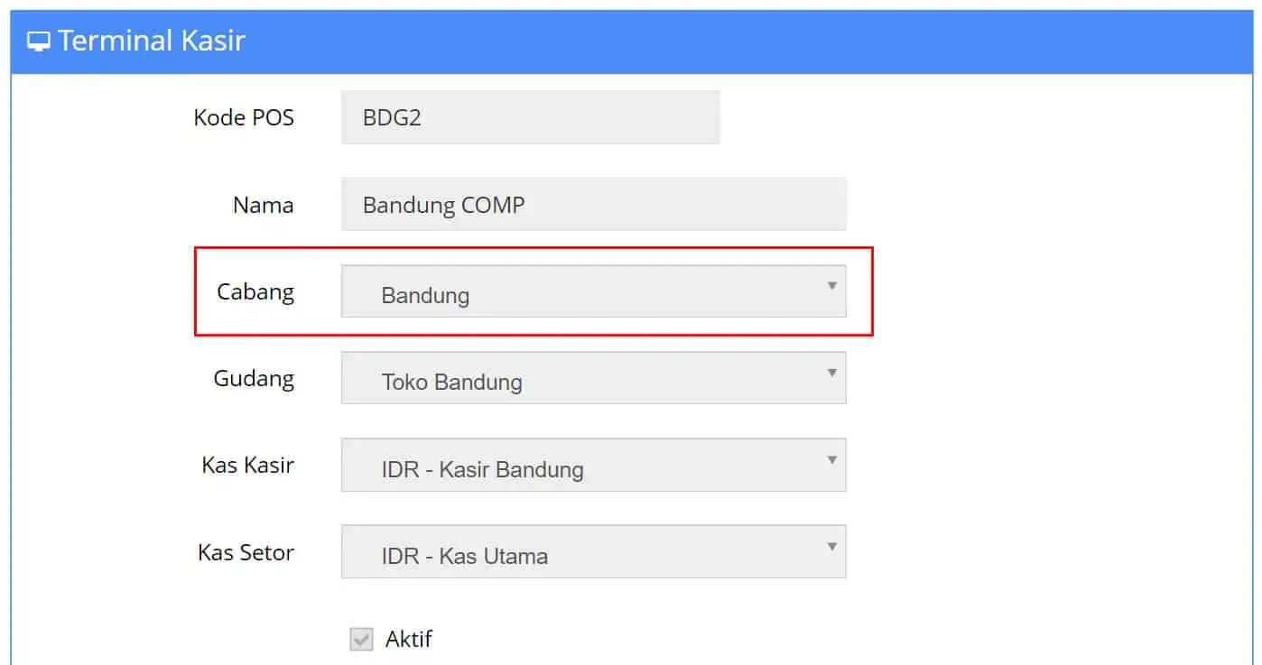 Terminal Kasir adalah pengaturan yang dipakai oleh Beepos terkait Gudangnya, Cabangnya, Kas Kasir nya dan Kas Setor nya. Semua beepos pasti memiliki 1 settingan Terminal Kasir.